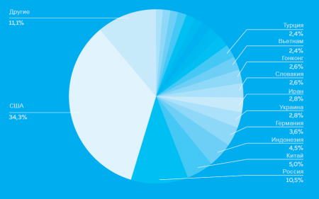 При этом США, Россия и Китай — это три страны, в которых зарегистрированные пользователи чаще других становились жертвами кибератак. Так, исследование показало, что каждый третий пострадавший находится в США.