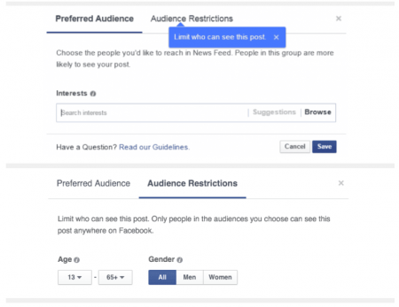 В качестве примера эксплуатации бага исследователь приводит возможность определения пола, возраста, примерного местонахождения и интересов пользователей, опираясь на фильтры Audience Restriction, которые можно применять к публикациям в Facebook.