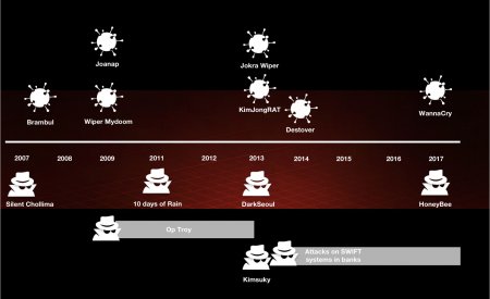 Стоит отметить, что опубликованное недавно совместное исследование компаний McAfee и Intezer связывает группу Darkhotel с властями КНДР. Изучив различные вредоносы и инструменты, датированные 2009-2017 годами, специалисты сумели объединить в одну схему сразу несколько кампаний и семейств малвари, обнаружив различные связи между ними.