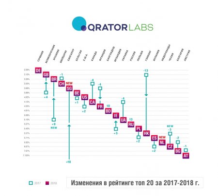 Румыния и Люксембург вышли из топ 20 с 11-го и 20-го места, соответственно, по итогам 2017 года;