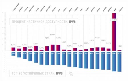 Что касается частичной связности — несколько стран «не видят» более 20% адресного пространства IPv6.