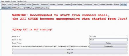 SQLiPy помогает с автоматизацией SQL-инъекций. Этот плагин тоже работает с API — тем, что предоставляет популярная утилита SQLMap. Думаю, что каждый, кто когда-либо возился с SQLi, слышал про эту тулзу. Однако не все знают, что она может работать в режиме REST API. Для этого ее нужно запустить таким образом: