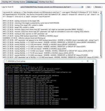 Если же тебя интересует более подробная информация о процессе сканирования, то ее можно отыскать на закладке SQLMap Logs. Выбирай нужный процесс и жми кнопку Get.