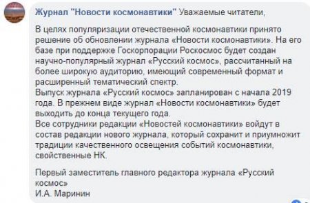 ✔Журнал «Новости Космонавтики» прекращает своё существование - «Интернет»