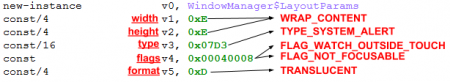 Кейлоггер в BusyGasper тоже реализован оригинальным способом. Сразу после активации малварь создает в новом окне элемент TextView со следующими параметрами:
