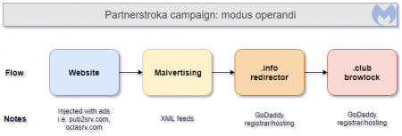 Текущая кампания злоумышленников посредством вредоносной рекламы перенаправляет пользователей Google Chrome 69.0.3497.81 на специальные страницы. По данным специалистов, в общей сложности в этой операции участвуют более 16 000 вредоносных доменов.