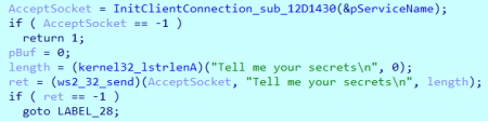 После успешной инициализации сетевого взаимодействия клиенту отправляется строка "Tell me your secretsn".