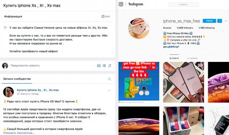 Специалисты констатируют, что социальная сеть Instagram в силу своей визуальной составляющей и ориентации на пользователей, которые любят фотографировать на телефон, стала основным каналом продвижения мошеннических сайтов. Под видом конкурсов, розыгрышей или акций со скидками до 50% мошенники собирают данные банковских карт, персональную информацию о пользователях или действуют по уже упоминавшейся схеме с предоплатой без гарантий получения нового iPhone.