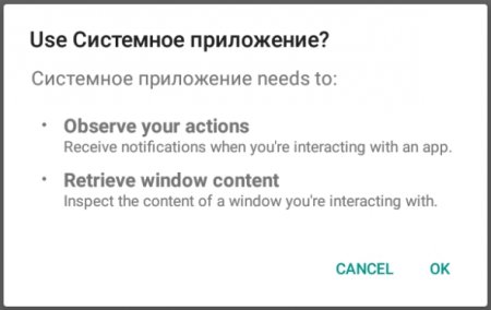 Окно «Use Системное приложение»