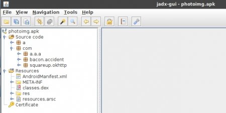 Выбираем File -> Open -> photoimg.apk. Видим исходники.