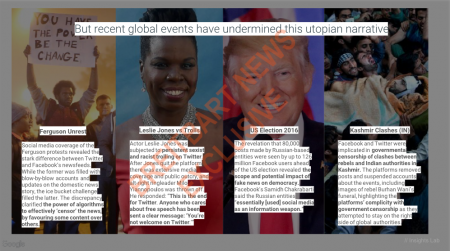 В заключении есть рассуждения о противоречивой позиции, в которой находятся такие компании как Google, Twitter и Facebook, им приходится проявлять твердость и держать тонкий баланс между цензурой и свободой речи — хотя вряд ли существует «правильная степень цензуры», которая устроит всех. «Интернет – говорится в презентации, — создавался на основании утопических принципов свободы слова».