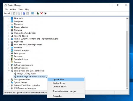 - затем нужно найти устройство, в имени которого содержится «SST», кликнуть на него правой кнопкой мыши и в появившемся меню выбрать пункт Update Driver («Обновить драйвер»);