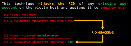 Кастро обнаружил, что модифицировав ключи реестра, в которых хранится информация об аккаунтах Windows, можно изменить присвоенный учетной записи RID, выдав аккаунту другой идентификатор и другие права. Подобная техника может быть крайне полезна хакерам, которые уже проникли в систему и теперь пытаются повысить свои привилегии. Подмена RID позволит выдать бэкдору права SYSTEM и надежно закрепиться в системе жертвы, ведь изменения в ключах реестра сохранятся и после перезагрузки.