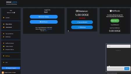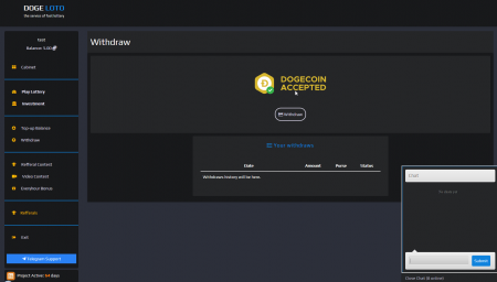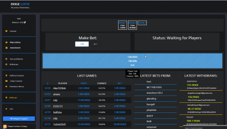 Еще один способ обмана людей, который практикует Investimer, это организация онлайн-лотерей, призом в которых служит определенная сумма в криптовалюте Dogecoin. Разумеется, лотереи устроены таким образом, что стороннему участнику выиграть в них невозможно, заработать на этом может только сам организатор розыгрыша. Тем не менее, на момент написания этого текста, на сайте организованной Investimer’ом лотереи было зарегистрировано более 5800 пользователей.