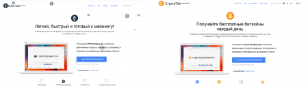 Помимо перечисленных выше способов криминального заработка, Investimer попытался скопировать официальный сайт cryptobrowser.site. Создатели оригинального проекта разработали специальный браузер, который в фоновом режиме добывает криптовалюту в процессе просмотра пользователем веб-страниц. По данным специалистов, подделка, которую создал Investimer, выполнена не слишком качественно: часть графики на сайте не отображается вовсе, в тексте лицензионного соглашения фигурирует адрес электронной почты настоящих разработчиков, а троян, который жертва получает под видом браузера, загружается с ресурса, расположенного на другом домене. На иллюстрации ниже показан поддельный сайт, созданный Investimer’ом (слева), в сравнении с оригинальным (справа).
