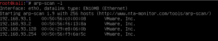 После того как мы экспортировали и запустили виртуалку, нам нужно узнать, какой у нее IP-адрес. Для этого на хосте воспользуемся командой $ arp-scan -l на Kali Linux, которая находится в одной сети с Wakanda.