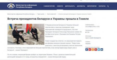 Так, на официальном сайте ведомства появилась информация, что в Гомеле состоялась встреча президентов России и Беларуси, однако в новости и на фото вообще нет Путина, зато фигурирует наш родненький Петр Алексеевич.