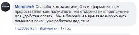"Мы отражаем в приложении для удобства оплаты. Мы в ближайшее время, возможно, немного поменяем поиск, уже работаем над этим", – сказали в Monobank.