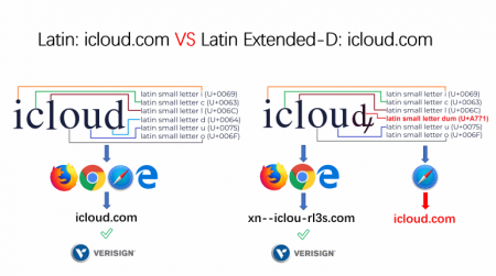 Теперь xisigr пишет, что браузер Safari можно ввести в заблуждение используя букву dum (U+A771) для подмены обычной буквы «d». Эти буквы и так выглядят почти одинаково, а Safari попросту не отрисовывает их единственное различие – небольшую черточку в нижней части. В результате фишеры могут использовать эту уловку для подделки реальных доменных имен.