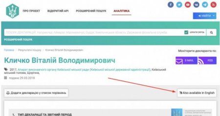 Сам интерфейс сайта пока что доступен только на украинском, и данные на английском языке уже находятся в Google по поиском по ФИО + слово "declarations".