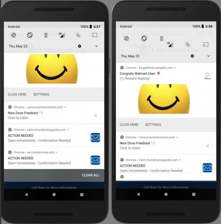 Эксперт компании Lookout Джереми Ричардс (Jeremy Richards) рассказал журналистам BleepingComputer о новом трюке, который мошенники применяют против пользователей Android-устройств. Атакующие злоупотребляют функциональностью API Notifications и Push, а также используют Google Chrome для Android, чтобы показывать пользователям фальшивые уведомления о пропущенных звонках.