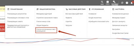 - Занесите минус-слова и исключенные места размещения в списки и применяйте их там, где потребуется — на уровне объявления, кампании или аккаунта.