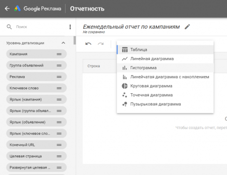 В Google Ads можно настроить отчет с любой комбинацией данных, доступных в аккаунте. Сами данные можно представить в любом виде: от таблицы до графиков.