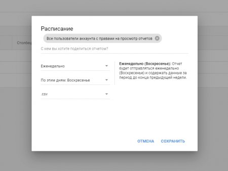 Там же есть возможность настроить отправку отчетов по электронной почте с любой частотой в Редакторе отчетов. Так, статистику можно будет посмотреть, не заходя в Google Ads.