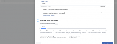 Установите размер похожей аудитории с помощью ползунка, а также определите, сколько look-alike аудиторий вы хотите создать.