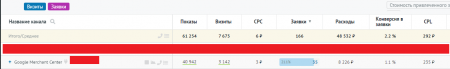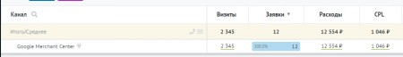 В первый месяц размещения в Google Merchant получили 12 заявок по цене более тысячи рублей каждая, что довольно дорого.