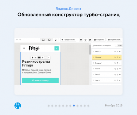 - Изменения в конструкторе турбо-страниц Директа