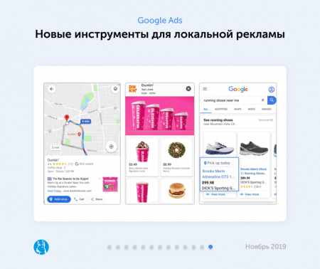 представила рекламодателям новые возможности локальных кампаний для увеличения охвата и продаж в праздники: точки продаж в Google Картах, появляющиеся, когда пользователь просматривает карту, локальный каталог для товаров на сайтах КМС, а также объявления Local inventory ads для рекламы продуктов, которых нет в магазине или можно забрать прямо сейчас.