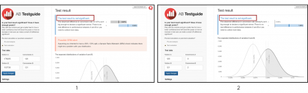 Чтобы корректно проанализировать результаты, воспользуйтесь калькулятором статистической значимости. Я использую A/B Testguide. Он позволяет оценить качество проведенных тестов и показывает, является ли разница между относительными значениями из двух выборок существенной. Заношу выборку и конверсии (это также могут быть показы и клики, клики и заявки, заявки и продажи и т. д.), получаю разницу результатов в заданных условиях:
