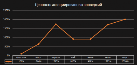 Увеличить количество ассоциированных конверсий в 25 раз, а их ценность в 20 раз.