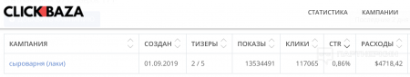 Трафик выкупали с витрин ClickBaza. Дополнительные настройки таргетинга не потребовались, так как в данной сети преобладает возрастная аудитория. Изначально использовали низкие ставки, но в итоге тестов, из-за неудовлетворительного качества трафика, решили начинать залив креатива с более высокой ставки. Так, тизеры начали запускали со ставкой 6 центов, цепляли CTR и плавно снижали до 3.5 центов. При такой ставке трафа собирали немного, но зато без особого контроля за РК отливали в небольшой плюс. В итоге ClickBaza принесла 117 065 кликов при средней цене за клик — 3.8 цента.