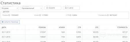 Скрин из ClickBaza со средним расходом за день: