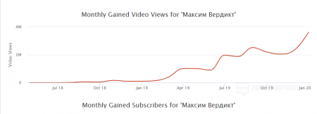 При этом трафик у него сильно вырос с ноября 2019 года. Если до осени 2019 года его канал получал миллион просмотров, то уже декабрь-январь просмотры увеличились до 4 миллионов в месяц.