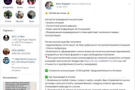 Максим Вердикт излучает уверенность и опыт в деле отношений с противоположным полом, поэтому у него нет отбоя от желающих купить платную консультацию за 15 000 рублей.