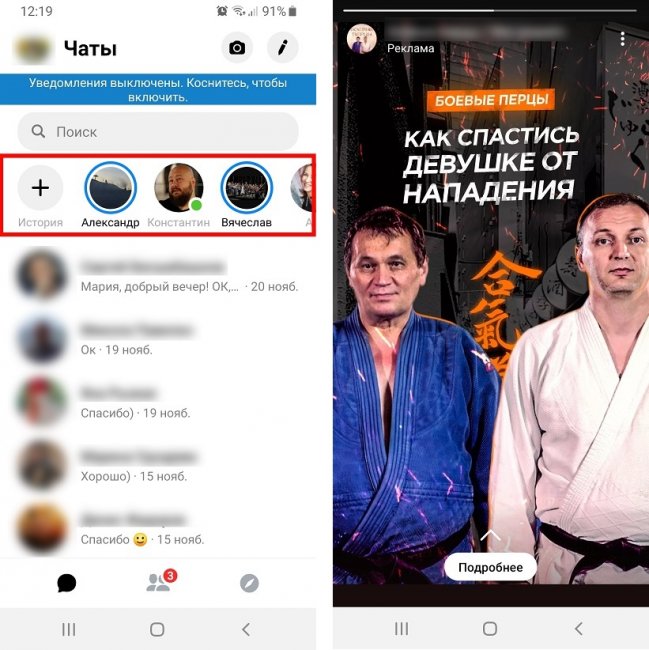 Реклама для Stories в Facebook Messenger, отображается во входящих сообщениях Messenger между историями, показывается между Stories, которые создают пользователи, не отличается от рекламы в Stories Instagram или Facebook.