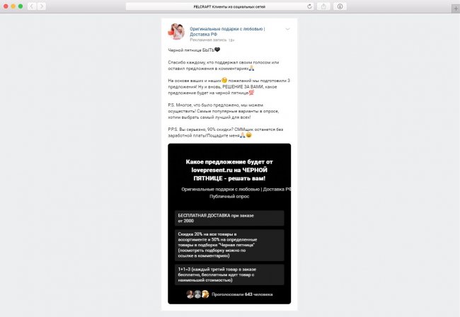 В качестве благодарности за активность в опросе за варианты проголосовавшие подписчики получили возможность выбрать: заказать товар по основному предложению или воспользоваться тем, что выбирали они.