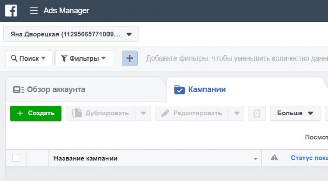В разделе «Кампании» выбираем «Создать».