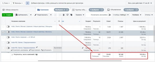 Получилось 127 лидов по 192 руб (с учетом всех тестов) при бюджете 24 500 руб. Проработала рекламная кампания примерно месяц. С тех заявок, которые были целевые не получилось заключить сделок, поэтому было принято решение остановить всю рекламу.
