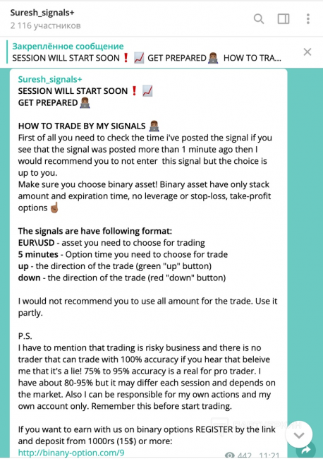 Вот пример нашего тг канала: https://t.me/sureshsignals