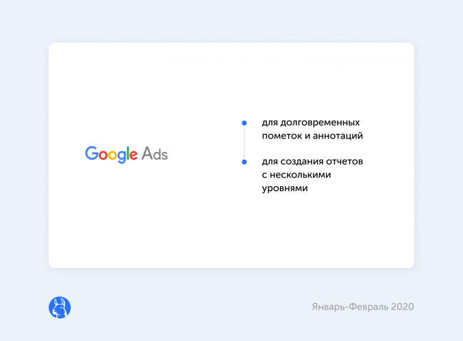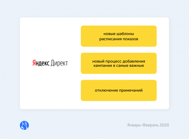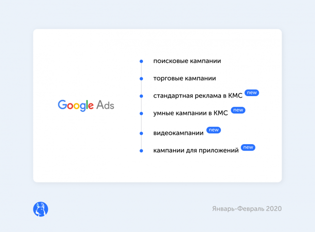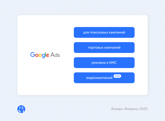 В начале 2020 года Яндекс.Директ представил новые форматы — смарт-плитку и продвижение видеоконтента, а также обновил некоторые опции — настройку геотаргетинга и корректировки ставок. Google изменил дизайн поисковых объявлений на десктопах и начнет показывать товарные объявления в Gmail, а на графике изменений появятся заметки о корректировках, внесенных в кампаниях.