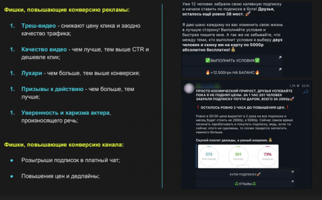 Многие капперы увлекаются съемками треш-видео. Это снижает цену клика, а вместе с ним и качество целевой аудитории. По статистике, чем выше качество ролика, тем выше CTR. Не забывайте о призывах к действию в каждой публикации. Это повышает конверсию. Остальные фишки, повышающие конверсию, вы увидите ниже.