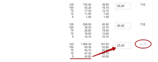 Шаг 1. Если ставка для 5 у. е. трафика равна 43 рублей, то мы ставим 25 рублей