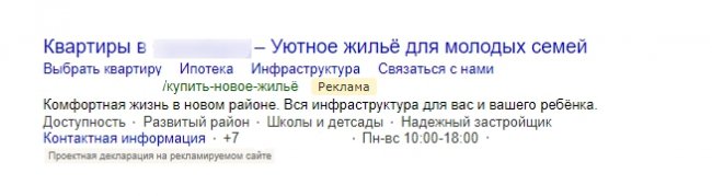 В рекламе для зрелой аудитории подчеркиваем наличие инфраструктуры и тихий микрорайон и указываем надежного застройщика, ведь часто люди старших лет с недоверием относятся к информации в интернете: