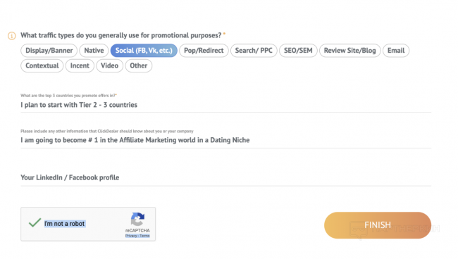 - What traffic types do you generally use for promotional purposes? — я выбрал Social (FB, Vk, etc).