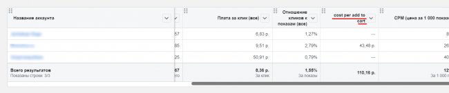 Далее нажимаем кнопку выгрузки, и наш отчет по нескольким рекламным аккаунтам с пользовательской метрикой готов. В нашем случае значение только одно, так как в остальных аккаунтах нет этого события.