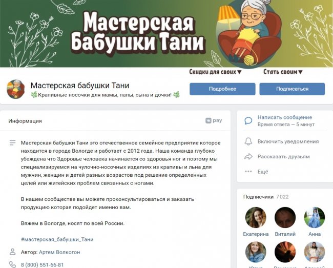 Для аватара выберите логотип или изображение, которое дает представление о виде деятельности. Если это личная страница — портрет. В данном случае на аватарке автор и изделие — хорошо